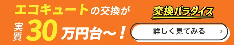 「お湯が突然出なくなった!」「エラーが頻繁に出る!」など、エコキュートに関するお悩みは交換パラダイスへご相談ください。 エコキュートの買い替えに対する悩みはさまざまで、どう対処したらいいのかわからないことも多いですよね。 交換パラダイスはこれまで、約1,700件以上のエコキュートに関するお悩みを解決してきた実績を持ち、Googleの口コミではありがたいことに★5つの高評価を数多くいただいております。 さまざまなお悩みに最適な提案をいたしますので、エコキュートについてお困りの場合には、ぜひ一度ご相談ください。 ※給湯省エネ事業2026年度については こちらからエコキュートのご購入をご検討なら交換パラダイスにお任せください!