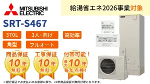 ※1 経済産業省の給湯省エネ事業2026の補助金対象のエコキュート(以下EQ)への交換における補助額であり、電気温水器からEQの交換の場合最大12万円支給されます。EQからEQの場合は最大10万円となります。また行政・自治体の判断で補助金が打ち切りになる等、給付が確約するわけではございませんので、あらかじめご了承ください。
