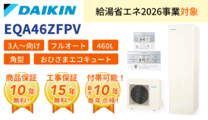 ※当社特別価格内容:エコキュート本体(貯湯ユニット・ヒートポンプユニット)、台所リモコン、脚部カバー、標準工事費、商品保証10年、工事保証15年等全てコミコミ合計価格