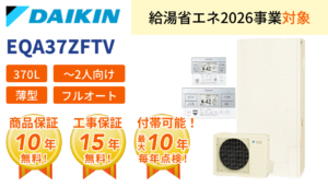 ※当社特別価格内容:エコキュート本体(貯湯ユニット・ヒートポンプユニット)、台所リモコン、脚部カバー、標準工事費、商品保証10年、工事保証15年等全てコミコミ合計価格