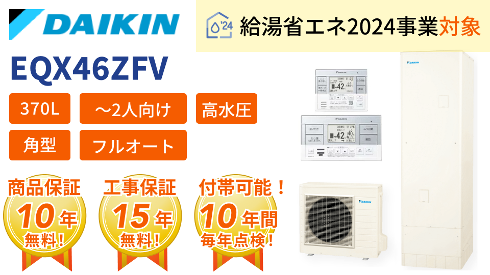 ※当社特別価格内容:エコキュート本体(貯湯ユニット・ヒートポンプユニット)、台所リモコン、脚部カバー、標準工事費、商品保証10年、工事保証15年等全てコミコミ合計価格