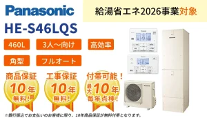 ※1 経済産業省の給湯省エネ事業2026の補助金対象のエコキュート(以下EQ)への交換における補助額であり、電気温水器からEQの交換の場合最大12万円支給されます。EQからEQの場合は最大10万円となります。また行政・自治体の判断で補助金が打ち切りになる等、給付が確約するわけではございませんので、あらかじめご了承ください。